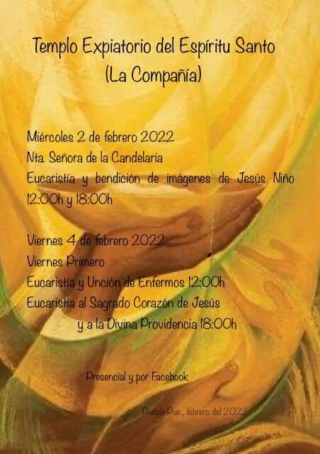Por su parte, en el Templo Expiatorio del Espíritu Santo (La Compañía) habrá misa e a las 12 y 18 horas.