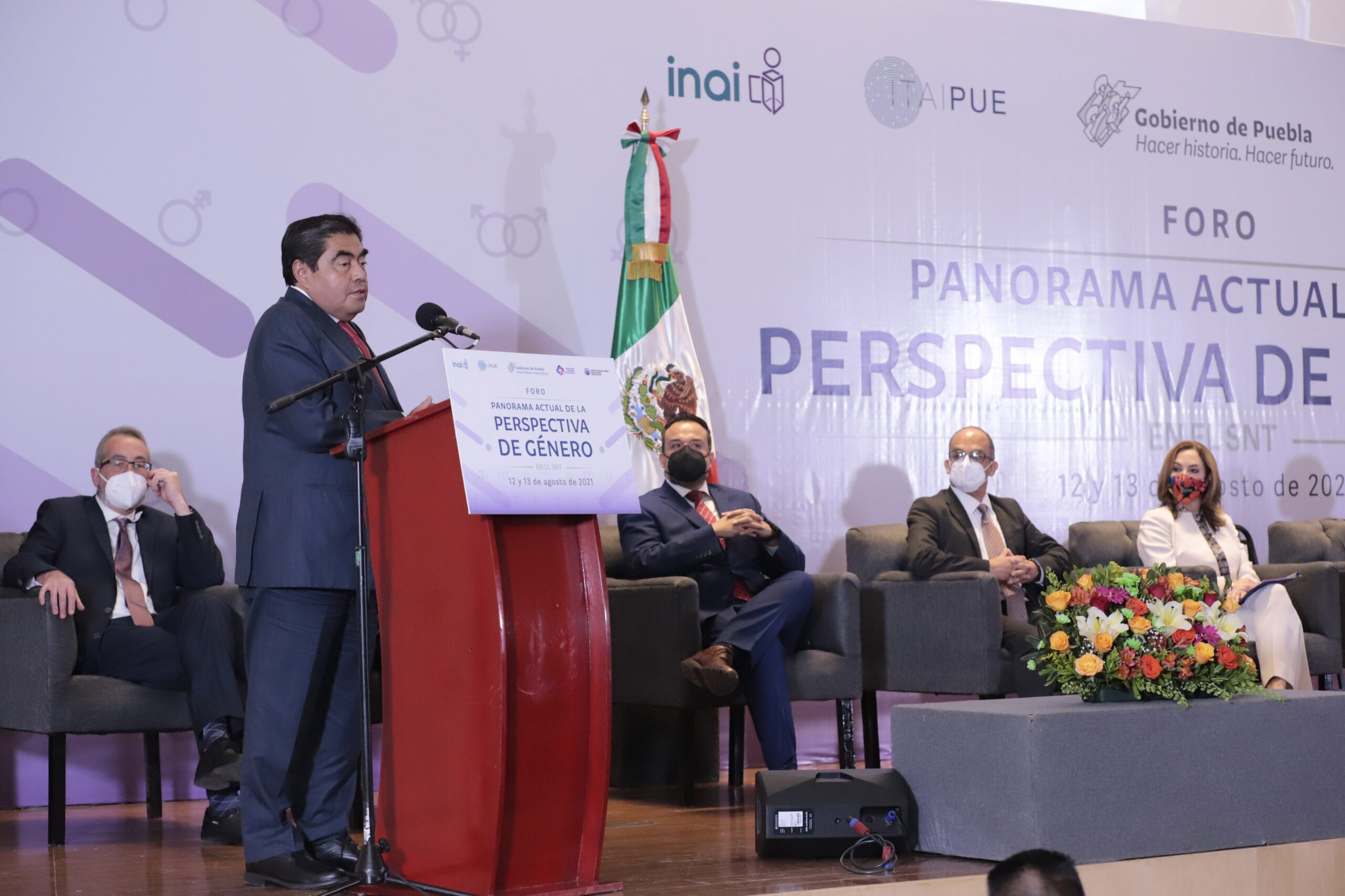 El gobierno de Puebla construye y aplica una igualdad sustantiva práctica y real entre la sociedad, lo que se traduce que en la entidad no hay ningún tipo de discriminación, sostuvo el titular del Ejecutivo local, Miguel Barbosa Huerta, al inaugurar el foro “Panorama Actual de la Perspectiva de Género en el Sistema Nacional de Transparencia”.