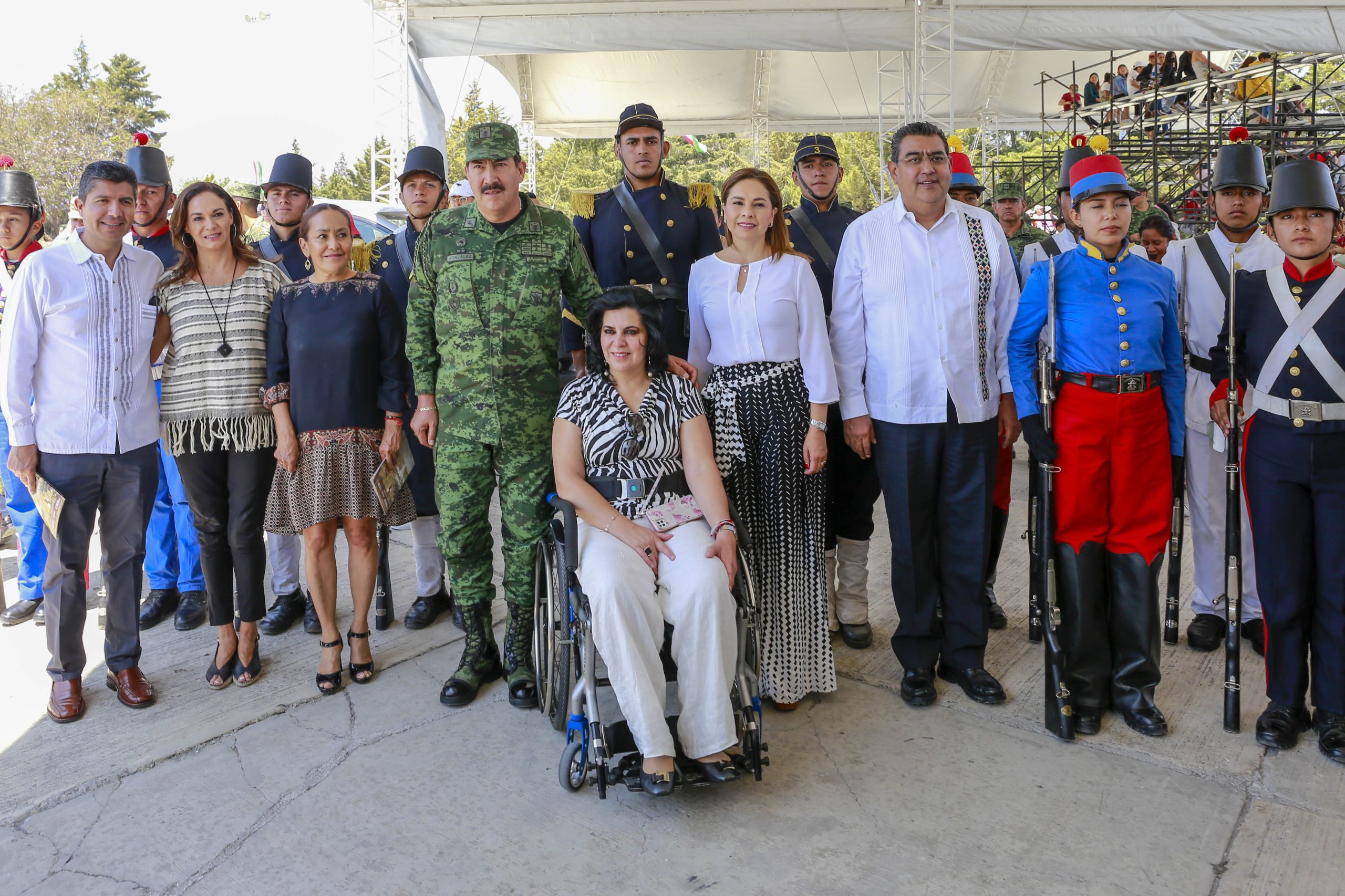 En este acto estuvieron presentes el Comandante de la VI Región Militar, José Alfredo González Rodríguez; funcionarios estatales; el alcalde de Puebla, Eduardo Rivera Pérez y su esposa Liliana Ortiz, presidenta honoraria del DIF municipal.