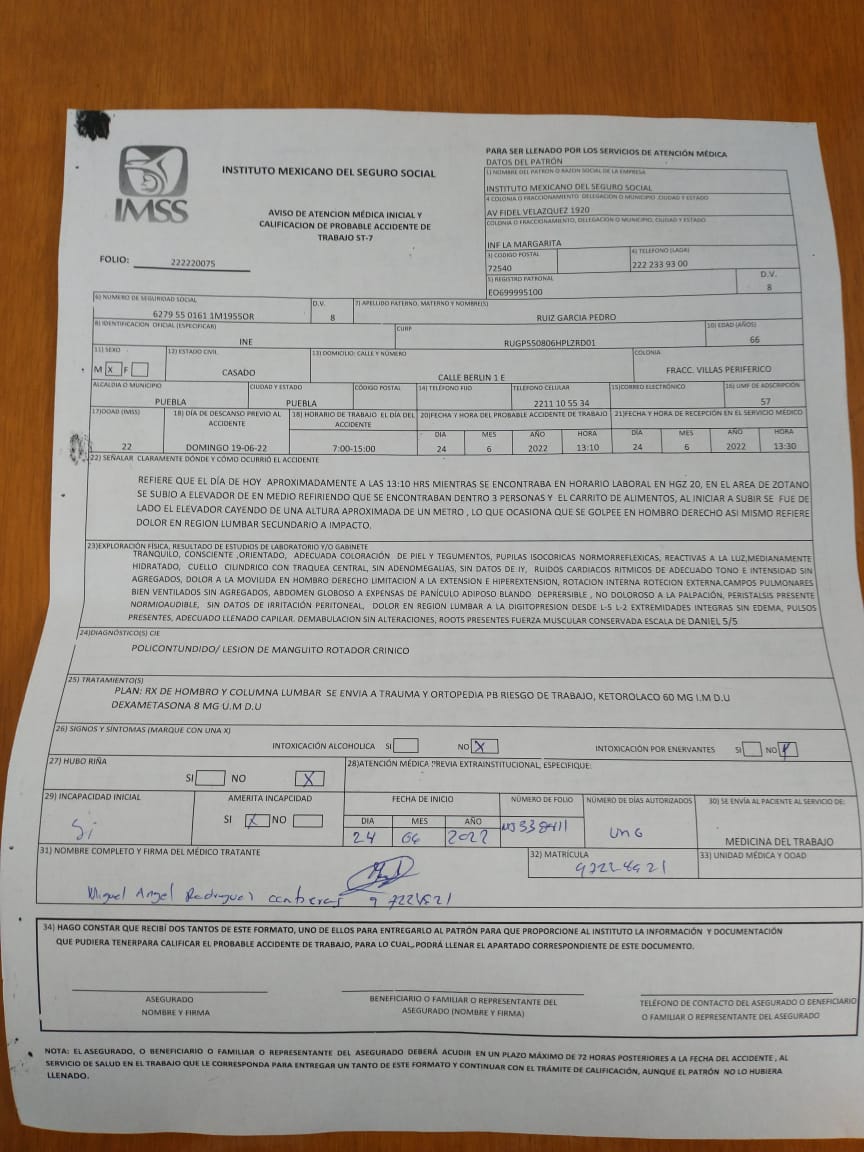 Trabajadores del Hospital del IMSS de La Margarita sufrieron lesiones producto de la caída del elevador en mal estado por falta de mantenimiento.