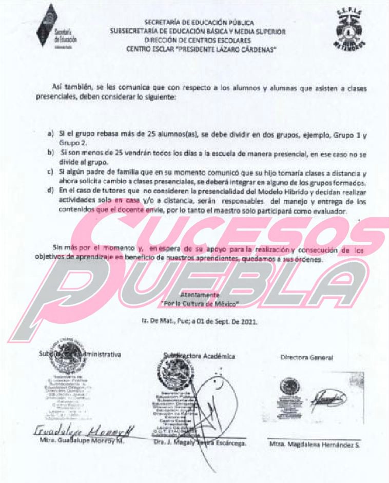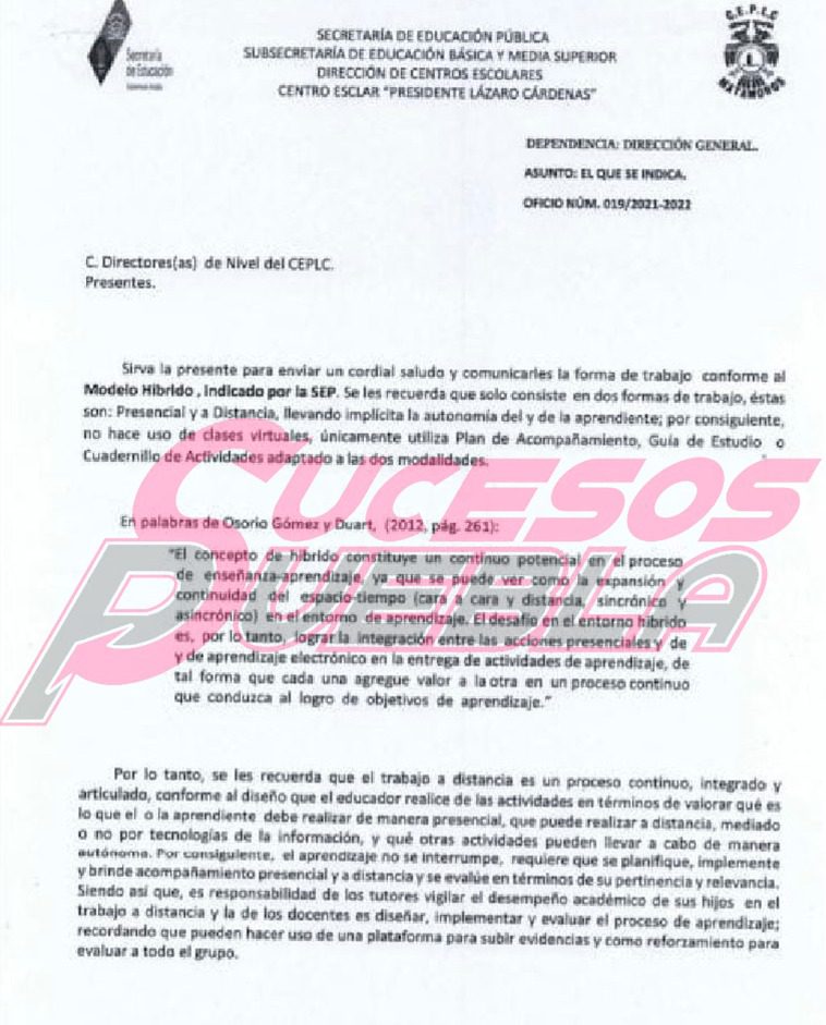 A través de una circular la Dirección del Centro Escolar Presidente Lázaro Cárdenas de Izúcar de Matamoros (CEPLC) informó a todos los padres de familia la cancelación de clases virtuales o todo tipo de conexión utilizando tecnología.