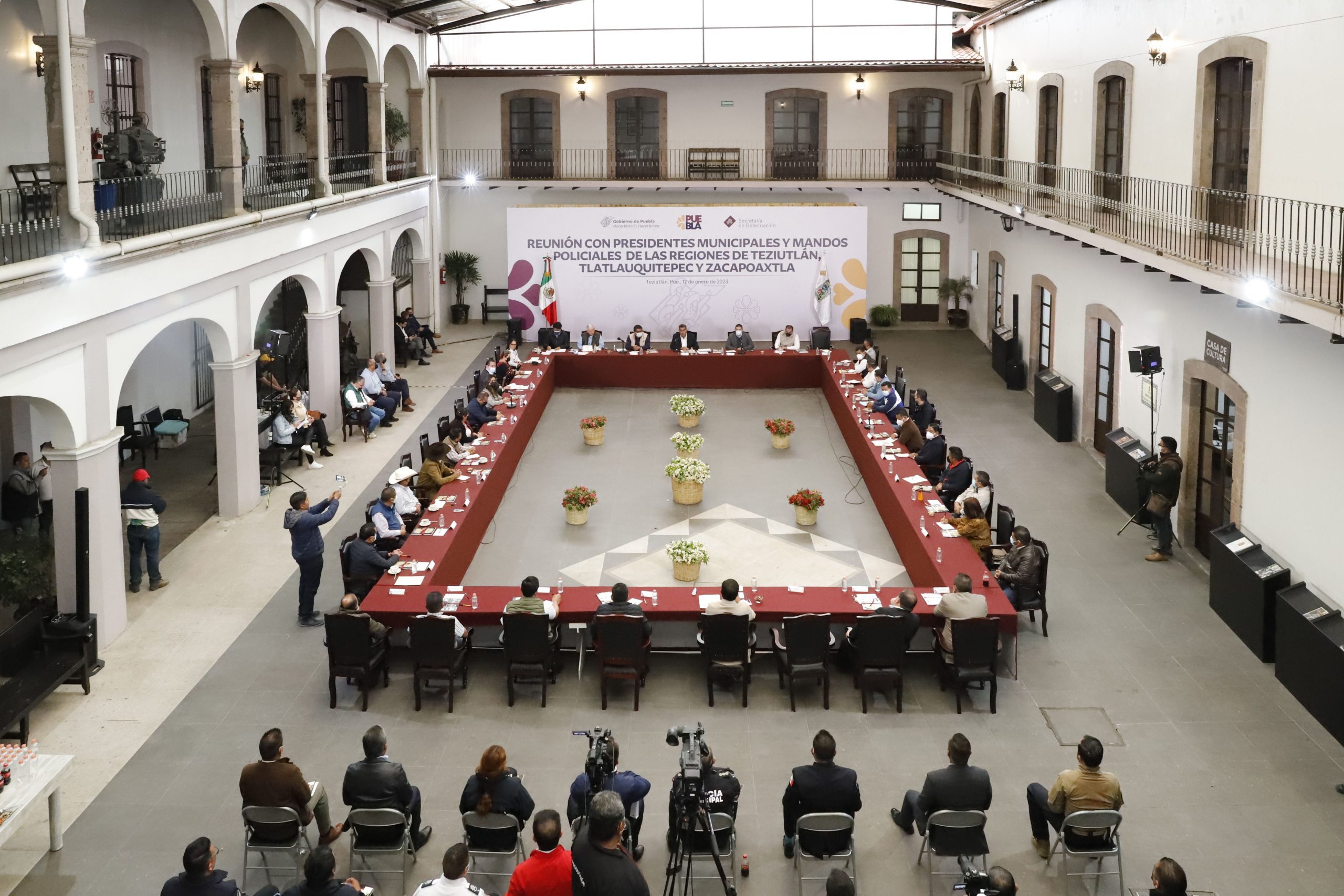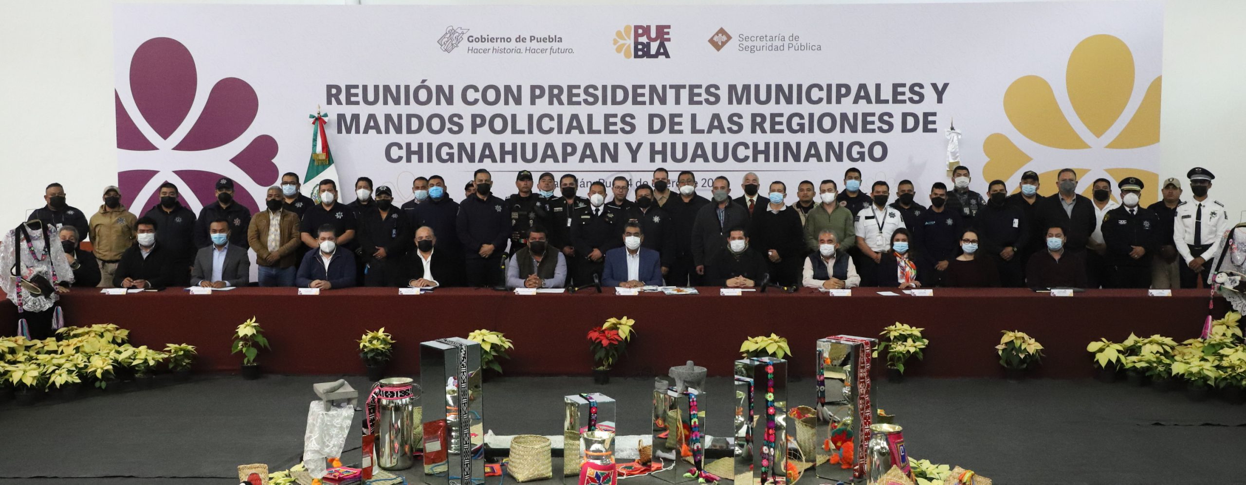 Del 15 de diciembre a la fecha, el mandatario estatal ha sostenido reuniones con presidentes municipales y mandos policiales de las regiones de Tehuacán, Ajalpan, Atlixco, Izúcar de Matamoros, Chignahuapan, Huauchinango, Amozoc, Tepeaca, Teziutlán, Tlatlauquitepec, Zacapoaxtla, Huejotzingo, San Martín Texmelucan, de la zona metropolitana, Acatlán, Ciudad Serdán, Tecamachalco y Xicotepec, abarcando así las 32 regiones del estado.