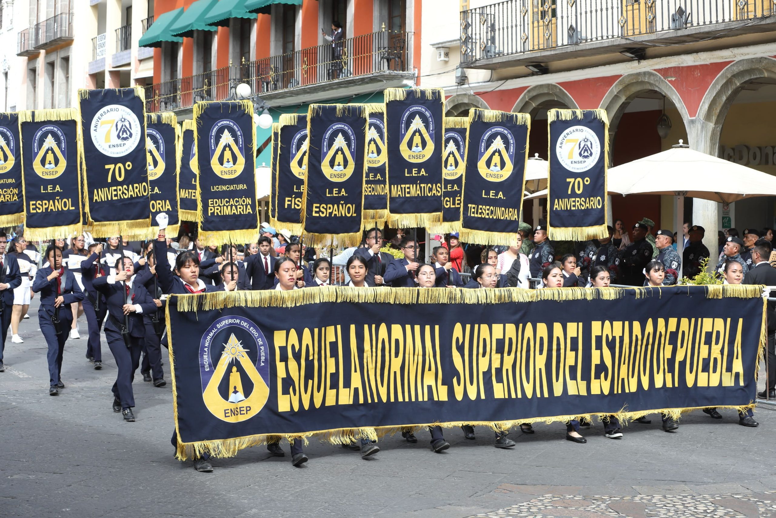 Los contingentes escolares estuvieron acompañados de seis carros alegóricos, mismos que resaltaron “Las consecuencias (Orden y el Progreso) bajo la dictadura porfirista”, “Puebla y sus batallas en tiempos de la Revolución Mexicana” y “El germen de la Revolución: en Puebla Luz y progreso, las voces en la clandestinidad de los Hermanos Serdán”.