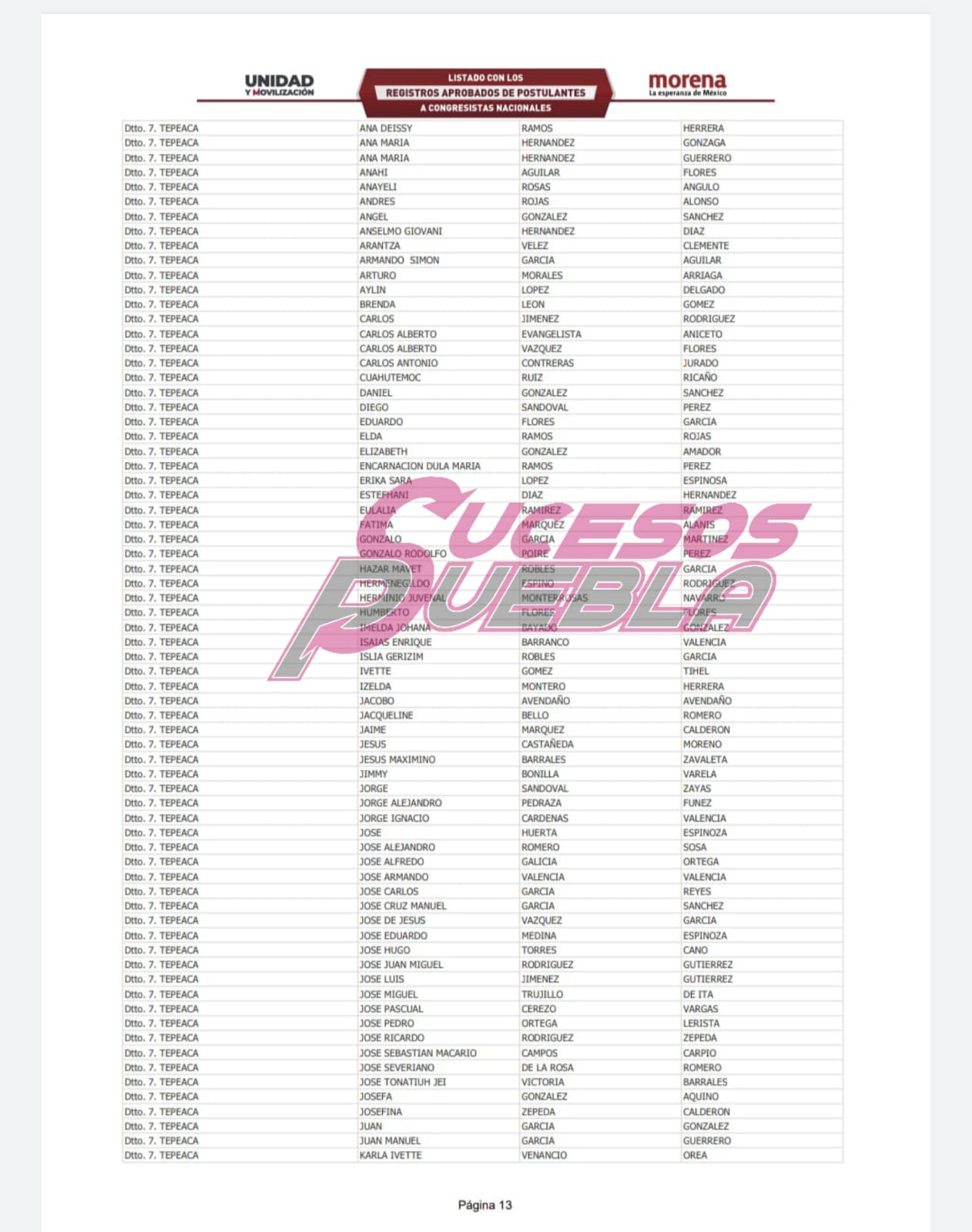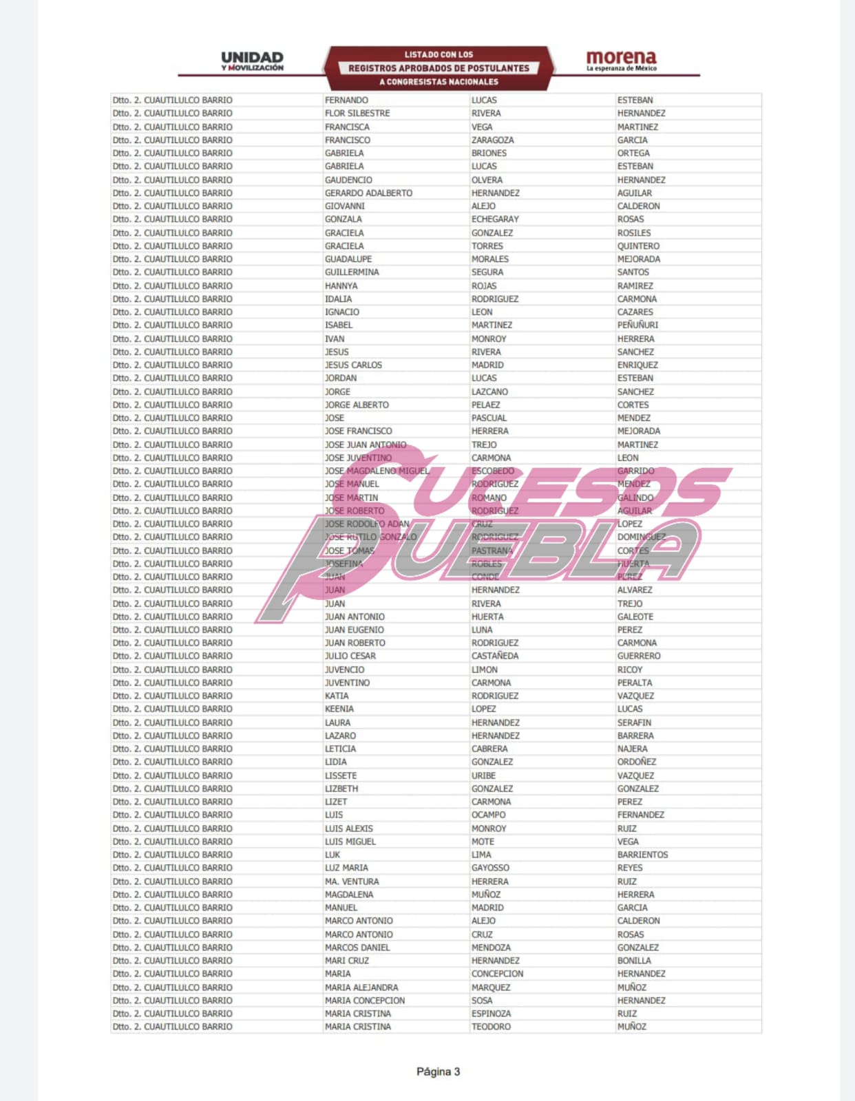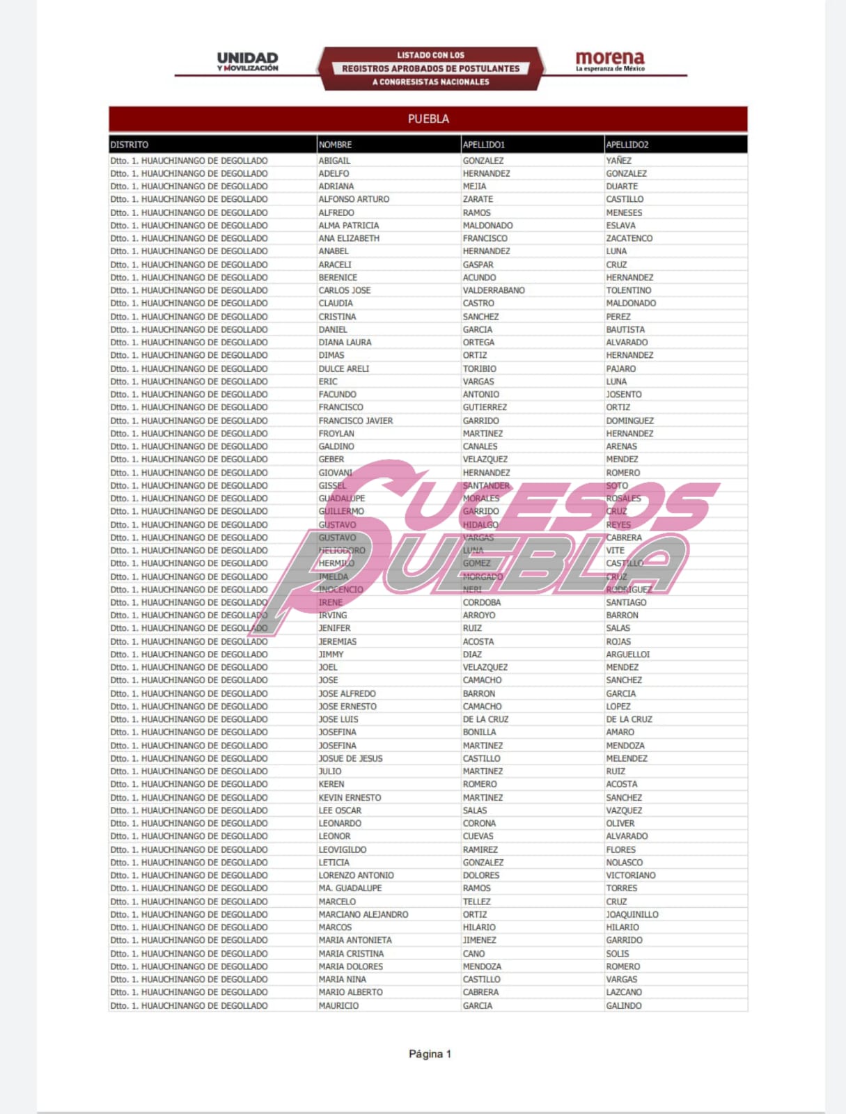 La lista consultada por Sucesos Puebla revela nombres de los diferentes grupos políticos al interior de Morena, por ejemplo, destacan Agustín Guerrero Castillo, Eduardo Elías Gandúr Islas, Vianey García Romero, Sergio Salomón Céspedes Peregrina, Olga Romero Garcí-Crespo, Gustavo Vargas Cabrera y Tonantzin Fernández Díaz.