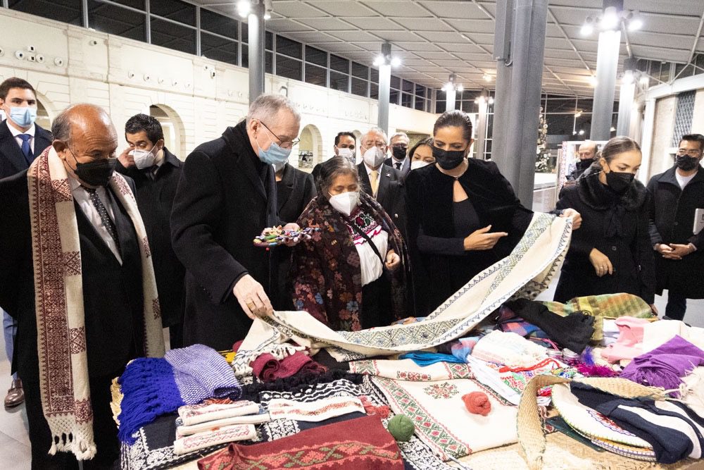 Como parte de las acciones de apoyo, difusión y fomento del trabajo de los artesanos de los diversos estados de la República Mexicana, el embajador de México ante la Santa Sede, Alberto Barranco Chavarría, acompañado por la secretaria de Economía en representación del gobernador de Puebla, Miguel Barbosa Huerta; el secretario de Cultura, Sergio Vergara y Marta Ornelas, secretaria de Turismo, acudió a este acto junto a Monseñor Paolo Nicolini, delegado del Papa Francisco para el patrimonio museográfico de la Sede Apostólica.