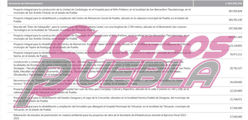 La Secretaría de Infraestructura se hará cargo de estos proyectos integrales, por lo que dichos recursos ya fueron etiquetados, lo mismo para la construcción de la Unidad de Cardiología y la Unidad de Oncología en el Hospital para el Niño Poblano, para los que asignaron 544.6 millones de pesos.