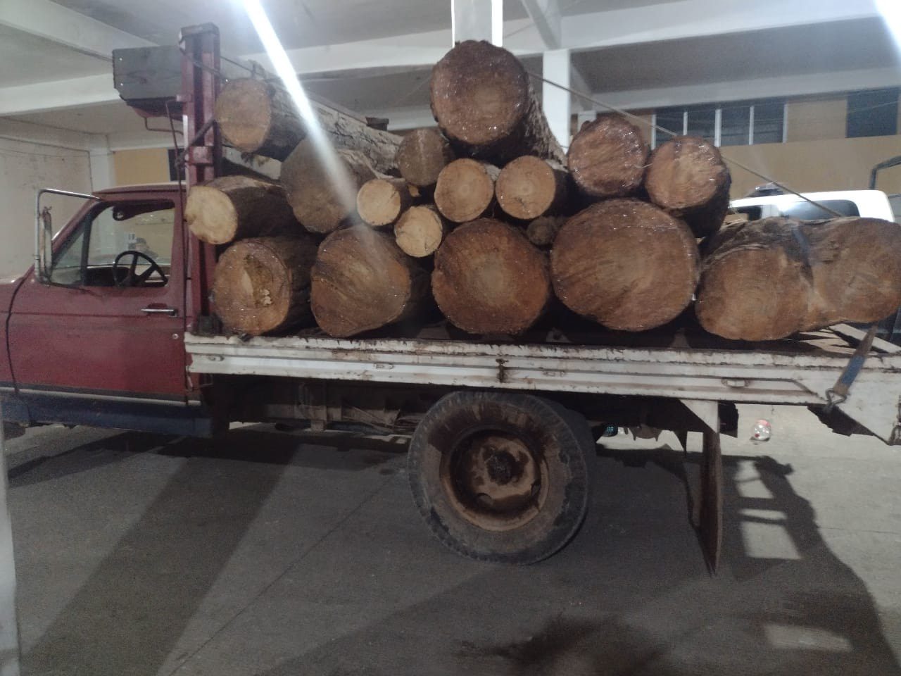 Gabino V. y Juan Carlos C., de 36 y 33 años, viajaban a bordo de una camioneta marca Ford F-150 con placas de circulación de Hidalgo, en la cual transportaban troncos de árbol.