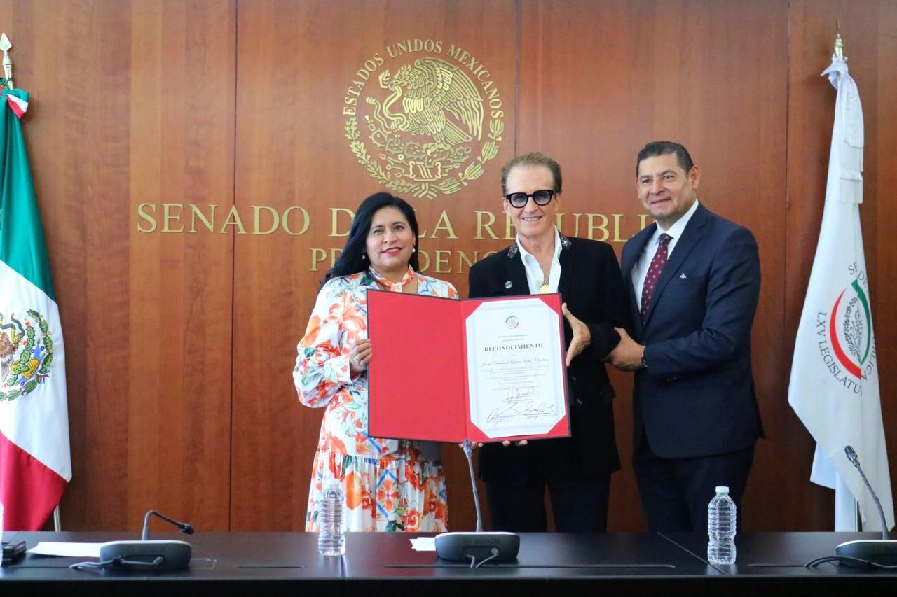 Por sus más de 45 años de trayectoria artística y por 2 décadas dedicadas a la labor ambiental, el cantante Emmanuel fue reconocido en el Senado de la República a instancia del legislador poblano Alejandro Armenta.