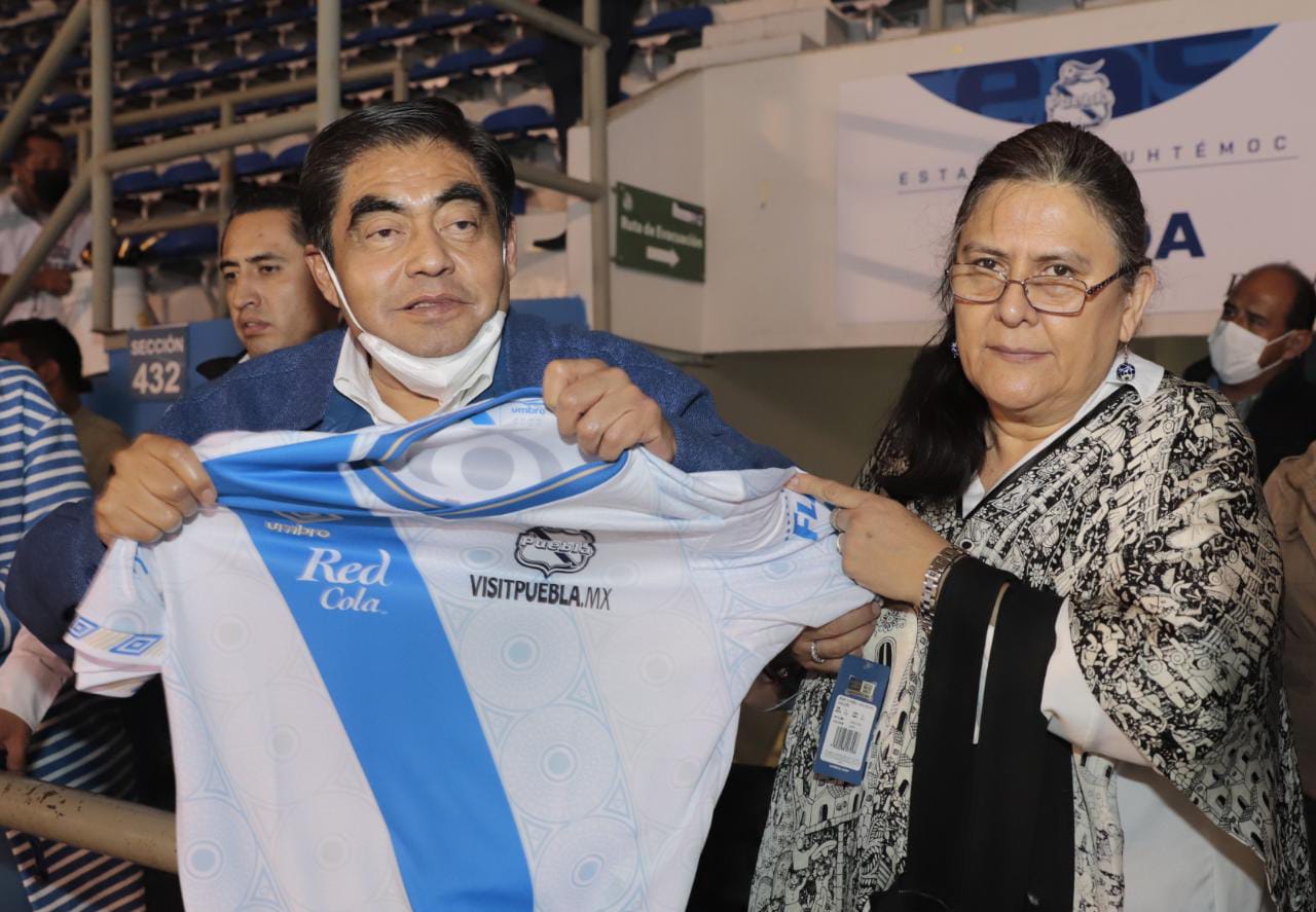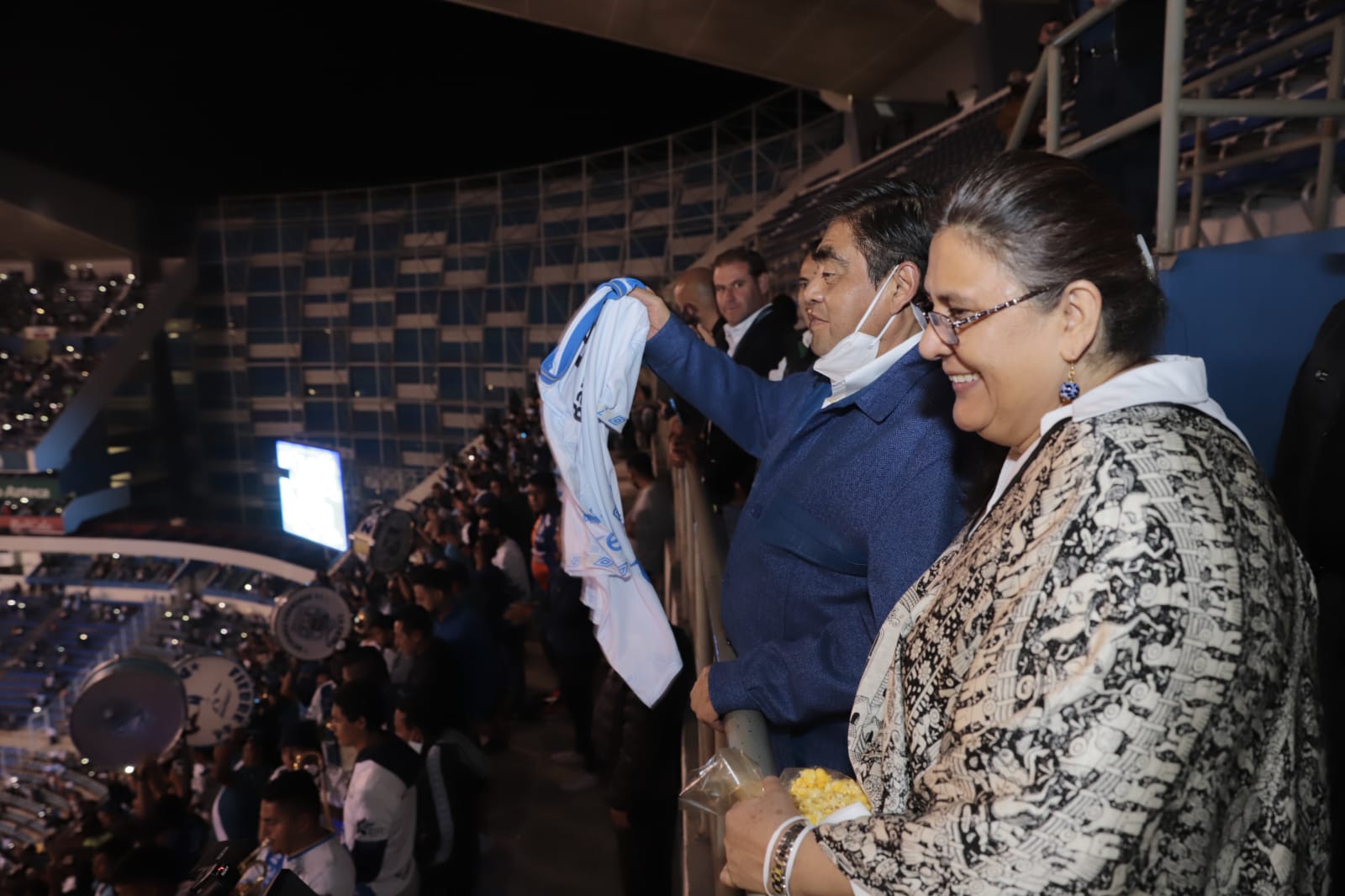 El mandatario recibió por parte de la afición el jersey oficial del Club Puebla. Ante esto, agradeció el gesto y reiteró el compromiso del Gobierno del Estado de garantizar que el futbol sea una fiesta en la que todas y todos disfruten sin violencia.
