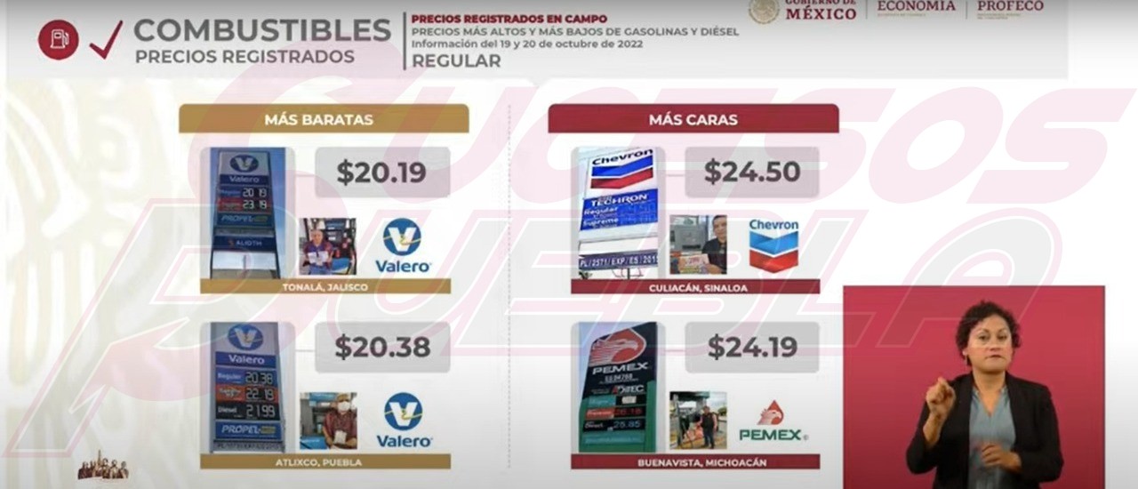 En el caso de Atlixco, la gasolinera Valero ofreció uno de los precios más bajos en gasolina regular situado en 20.38 pesos litro; hasta cuatro pedos menos por litro en relación al precio de venta de Chevron en Culiacán, Sinaloa.