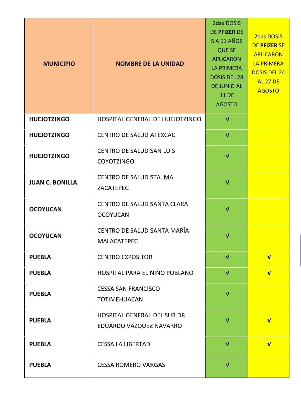 ● Segunda dosis de 5 a 11 años 11 meses (que se aplicaron la primera dosis del 24 al 27 de agosto).