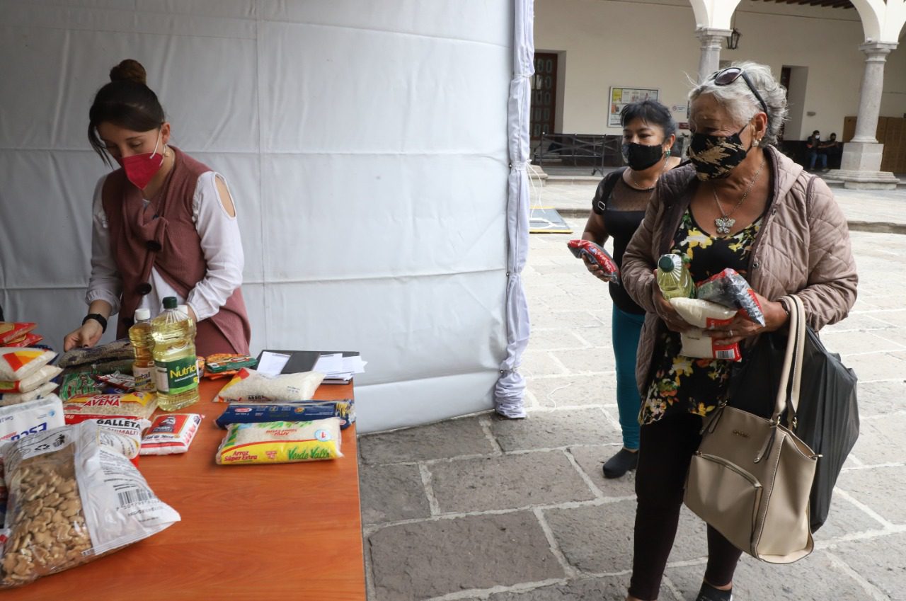 Los productos que el organismo está recibiendo son: frijol, arroz, lentejas, sopa de pasta, harina de maíz y aceite, así como pañales para bebé, toallas sanitarias, agua embotellada y gel antibacterial.
