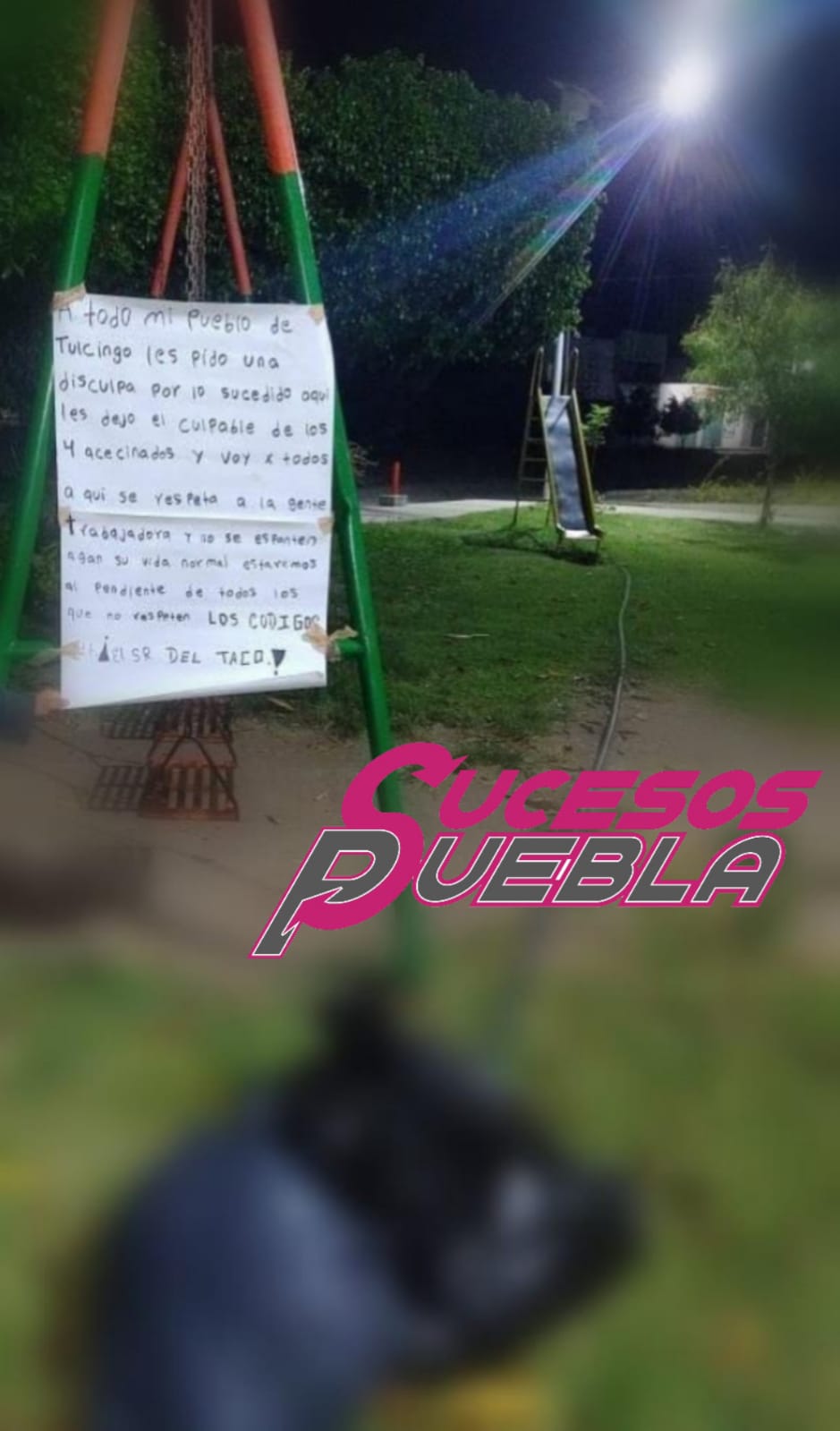 La violencia azotó al municipio de Tulcingo de Valle, cuando la madrugada de este lunes, hallaron dos bolsas, con el cuerpo del comandante de los dos turnos de la Policía Municipal, Maurilio N., en un parque; momento en el que se publicó un video en su cuenta de Facebook, confesando el asesinado de cuatro personas.
