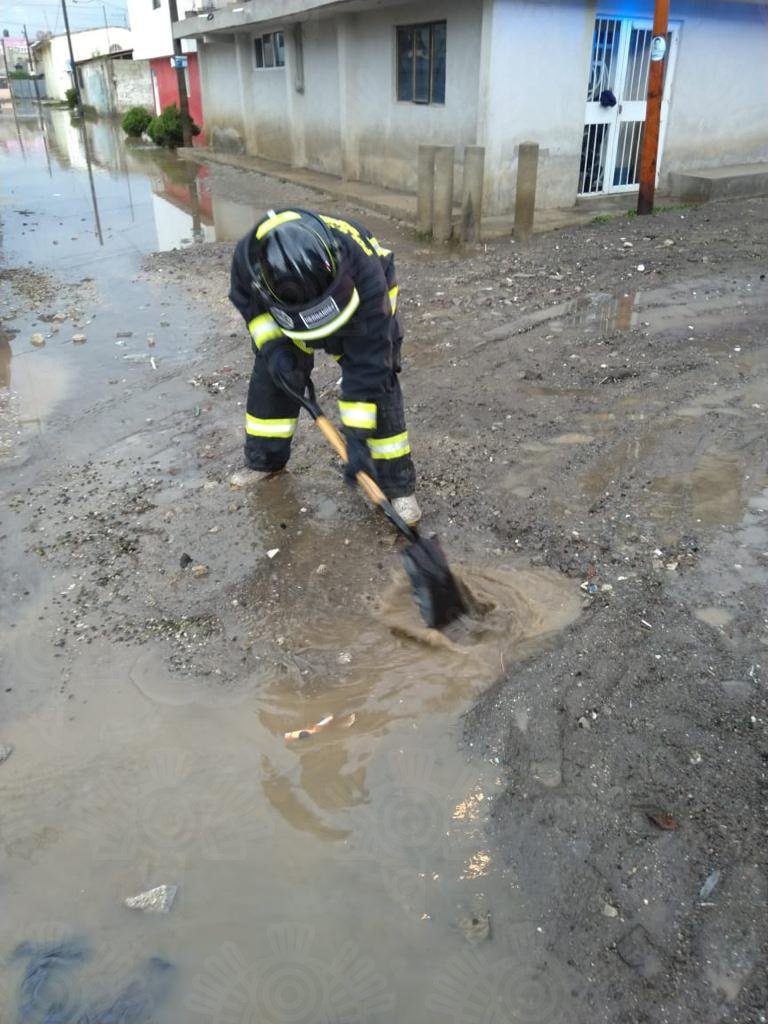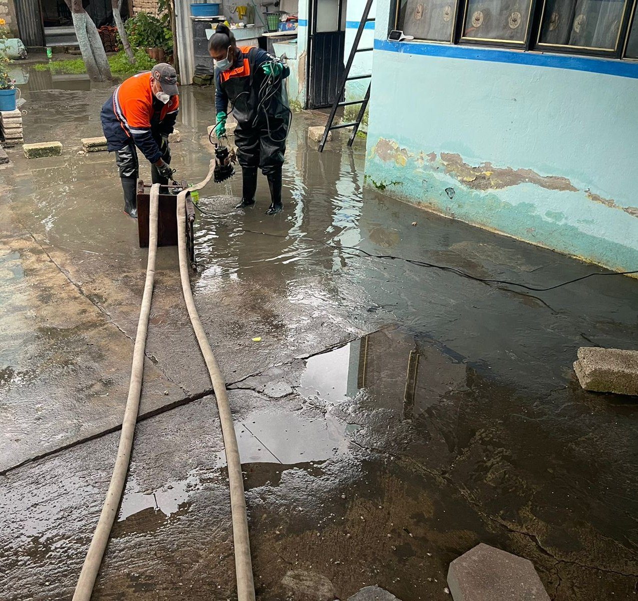 Mientras que Protección Civil de la capital brindaron apoyo para retirar agua de vivienda en la Junta Auxiliar de San Jerónimo Caleras.