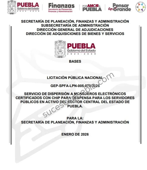 El Gobierno del Estado de Puebla lanzó una licitación pública nacional para contratar el servicio de monederos electrónicos con chip, que se utilizarán para la entrega de despensa a trabajadoras y trabajadores del sector central en activo.