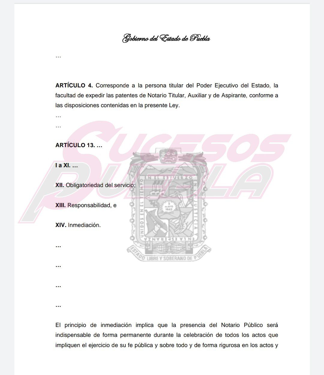 El gobernador Miguel Barbosa Huerta propone reformas a la Ley del Notariado para el Estado de Puebla, las que incluyen que el titular del Poder Ejecutivo del Estado es el facultado para expedir las patentes de notario titular, auxiliar y de aspirante, además propone la carrera notarial, exámenes rigurosos y la presencia de notarios en todo acto de fe pública, esto para evitar actos de corrupción.