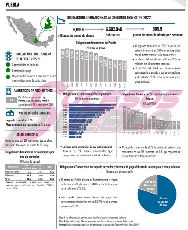 Puebla figura entre los 26 estados del país que gozan de finanzas sanas pues su nivel de endeudamiento es bajo y no afecta en gran medida sus Participaciones Federales.