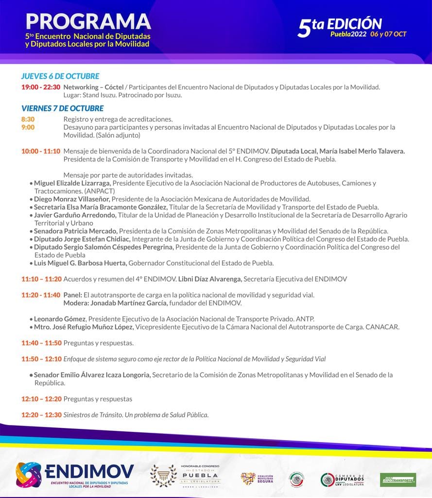Puebla será sede del Encuentro Nacional de Diputadas y Diputados Locales por la Movilidad (ENDIMOV) el 6 y 7 de octubre en el Centro Expositor, el evento impulsado por la Comisión de Transportes y Movilidad de la LXI Legislatura del Congreso del Estado contará con la presencia de especialistas y abrirá la discusión para armonizar la Ley en la materia.