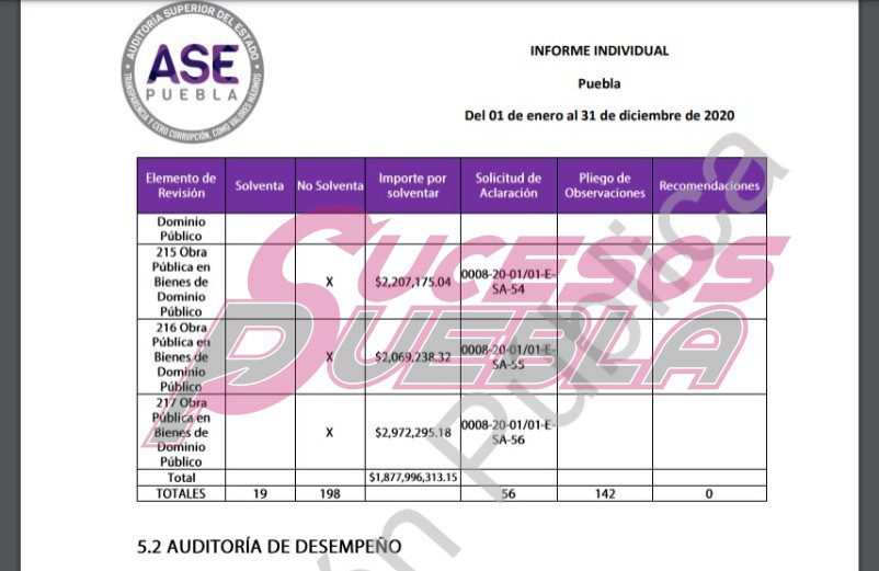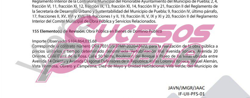 Solo 19 fueron solventados y 198 no lo fueron, siendo la Rehabilitación Vial Avenida Xonaca, 20 oriente, Calle Carril de La Rosa, Calle 50 Norte, Bulevar Bosque y Paseo de las Villas que involucra al menos siete colonias, la que tuvo el mayor monto observa por 104.8 millones de pesos.