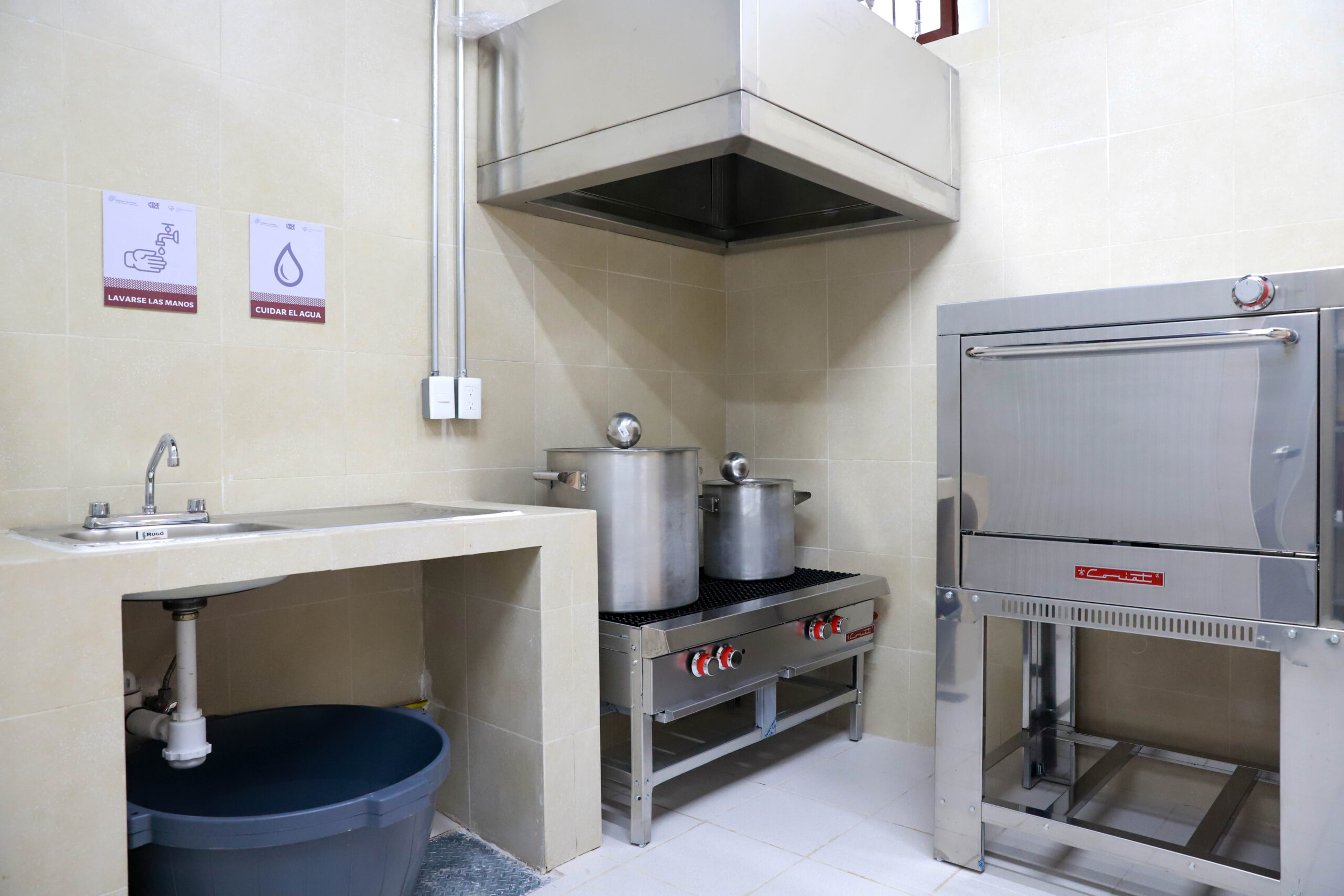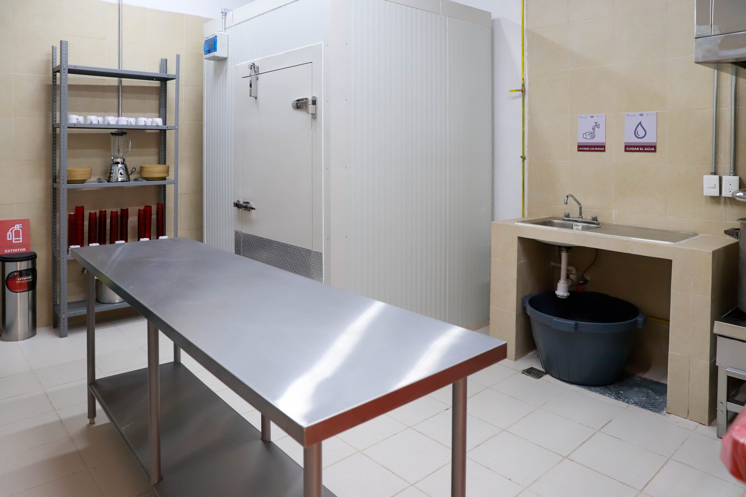 Este albergue cuenta con: consultorio médico, de psicología, área de contención, dormitorio hombres, sanitarios hombres, dormitorios mujeres, sanitarios mujeres, ludoteca, comedor, cocina y área administrativa.