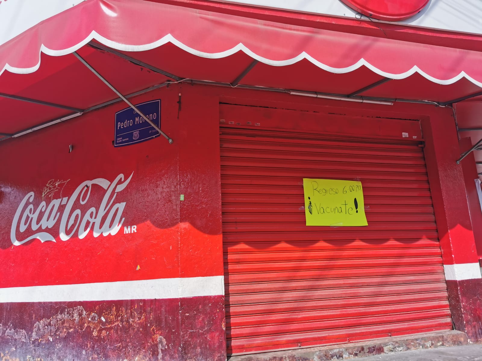 En abarrotes Chely de la colonia Vicente Guerrero en la ciudad de Puebla sus dueños bajaron las cortinas por que se fueron a vacunar contra el Covid y hacer conciencia de lo importante que es evitar los contagios.