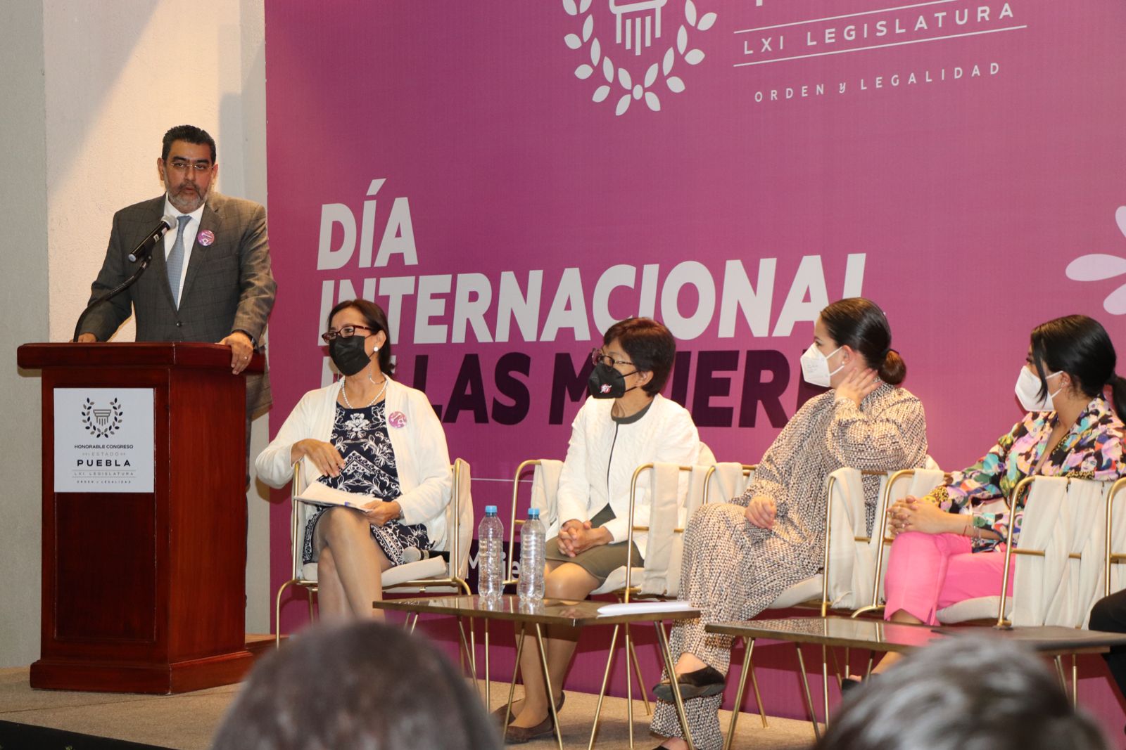 También, en el presídium, se contó con la asistencia de la directora del Sistema Estatal DIF del Gobierno del Estado de Puebla, Leonor Vargas Gallegos, en representación de la presidenta del patronato Rosario Orozco Caballero, quien sostuvo que el Día de la Mujer no es una fecha de celebración sino para visibilizar el reconocimiento de los derechos de este sector de la población.