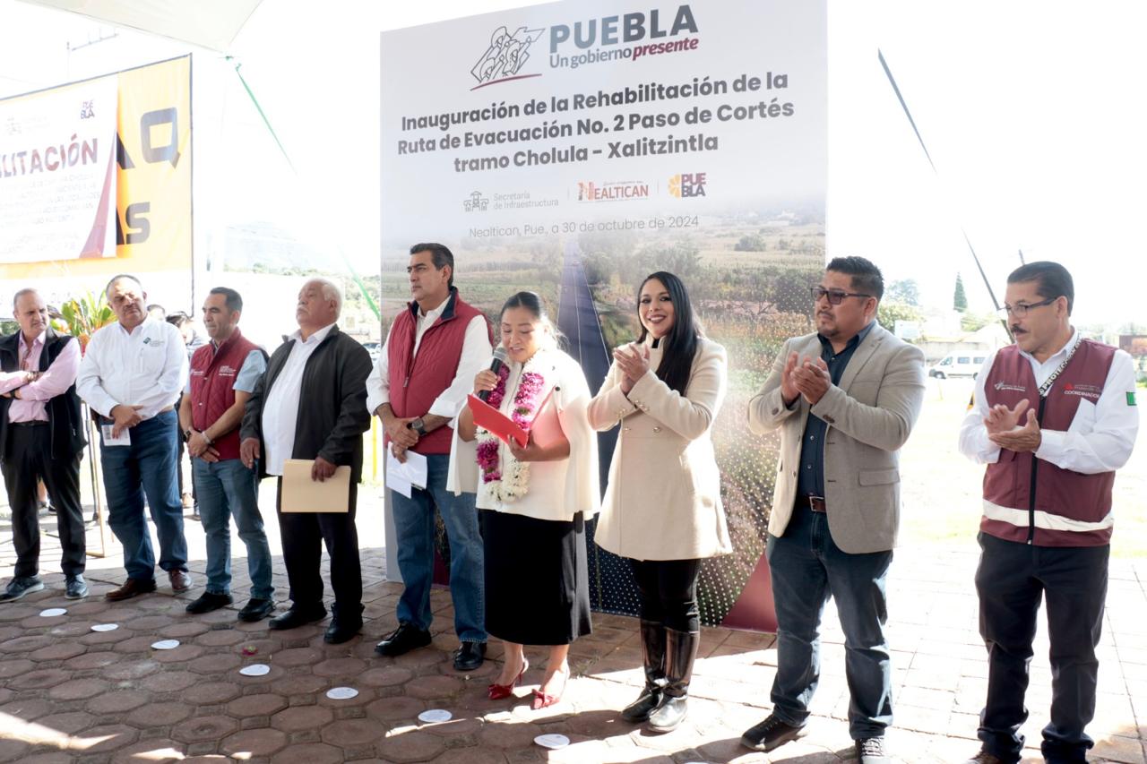 Tonantzin Fernández aplaude rehabilitación de la ruta de evacuación tramo Cholula-Xalitzintla